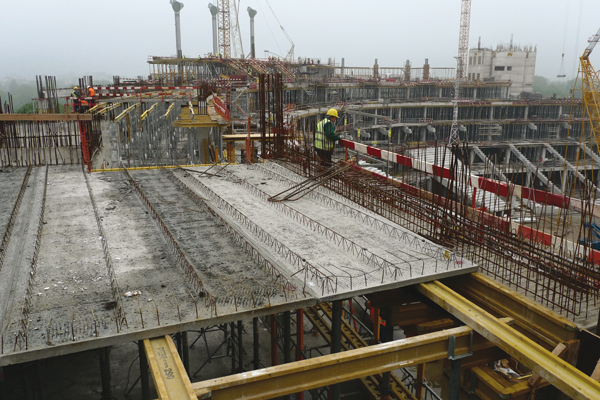Fot. 1. Wykonywanie konstrukcji trybun z elementów prefabrykowanych na Stadionie Narodowym (fot. G. Adamczewski)