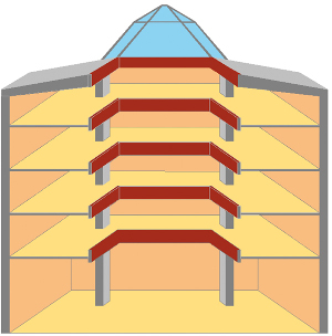 Rys. 4 Atrium otwarte (ang. fully open atrium) [2]