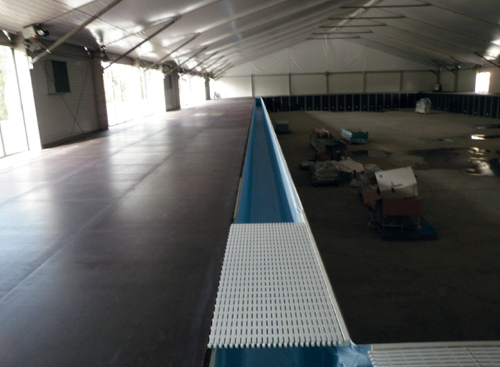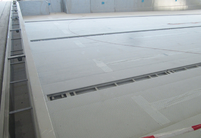 Fot. 1. Panele z rynną połączone ze ścianą nawrotową szczytową systemu z ramą Myrtha