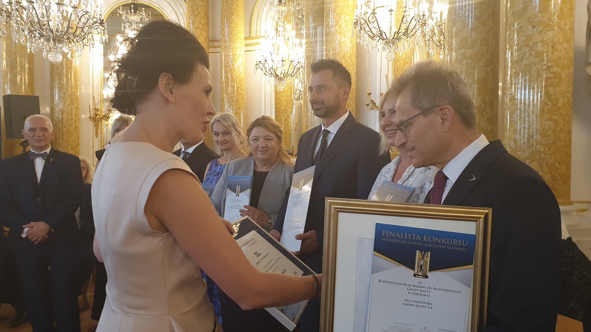 Wydawnictwo Polskiej Izby Inżynierów Budownictwa objęło konkurs patronatem medialnym. Redaktor naczelna miesięcznika „Inżynier Budownictwa” Aneta Grinberg-Iwańska wręczyła w imieniu wydawnictwa nagrodę w kategorii nowe obiekty za budowę Centrum Badawczo-Rozwojowego Grupy Azoty w Tarnowie – dla inwestora Grupy Azoty S.A. oraz dla wykonawcy Firmy Budowlanej Anna-Bud sp. z o.o. Morawica. Anna Dębińska Redaktor naczelna „Przewodnika Projektanta” wręczyła nagrodę dla projektanta obiektu – Pracowni Projektowej F-11 Marcin Furtak Kraków.