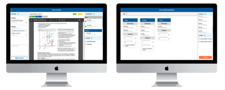 - Pełna kontrola i bezpieczeństwo: menedżer projektu ma bieżący podgląd statusu wszystkich dokumentów, a system automatycznie pilnuje terminów i archiwizuje historię zmian. Dokumenty są przechowywane bezpiecznie w chmurze, z dostępem ograniczonym do uprawnionych użytkowników, co zwiększa poufność i eliminuje problemy zgubionych papierów.