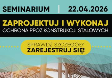 Seminarium techniczne poświęcone projektowaniu i wykonawstwu zabezpieczeń przeciwpożarowych konstrukcji stalowych pt. „Zaprojektuj i wykonaj. Zabezpieczenia ogniochronne konstrukcji stalowych” odbędzie się 22.04.2026 r. w Warszawie.