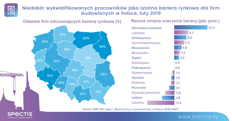 Według ogólnopolskiego raportu zamieszczonego na stronie internetowej www.barometrzawodow.pl w prognozie na 2019 r. w 11 zawodach ściśle związanych z budownictwem (na 18 badanych) przewidziano znaczne zwiększenie deficytu pracowników. Tylko trochę łatwiej będzie można pozyskać do pracy inżynierów budownictwa, inspektorów nadzoru budowlanego czy architektów i urbanistów. Zgodnie z tą analizą na 32 zawody, w których w Polsce występuje deficyt pracowników, aż 9 to zawody budowlane (betoniarze i zbrojarze, brukarze, cieśle i stolarze, dekarze oraz blacharze, monterzy instalacji, murarze i tynkarze, operatorzy oraz mechanicy sprzętu do robót ziemnych, pracownicy robót wykończeniowych, robotnicy).